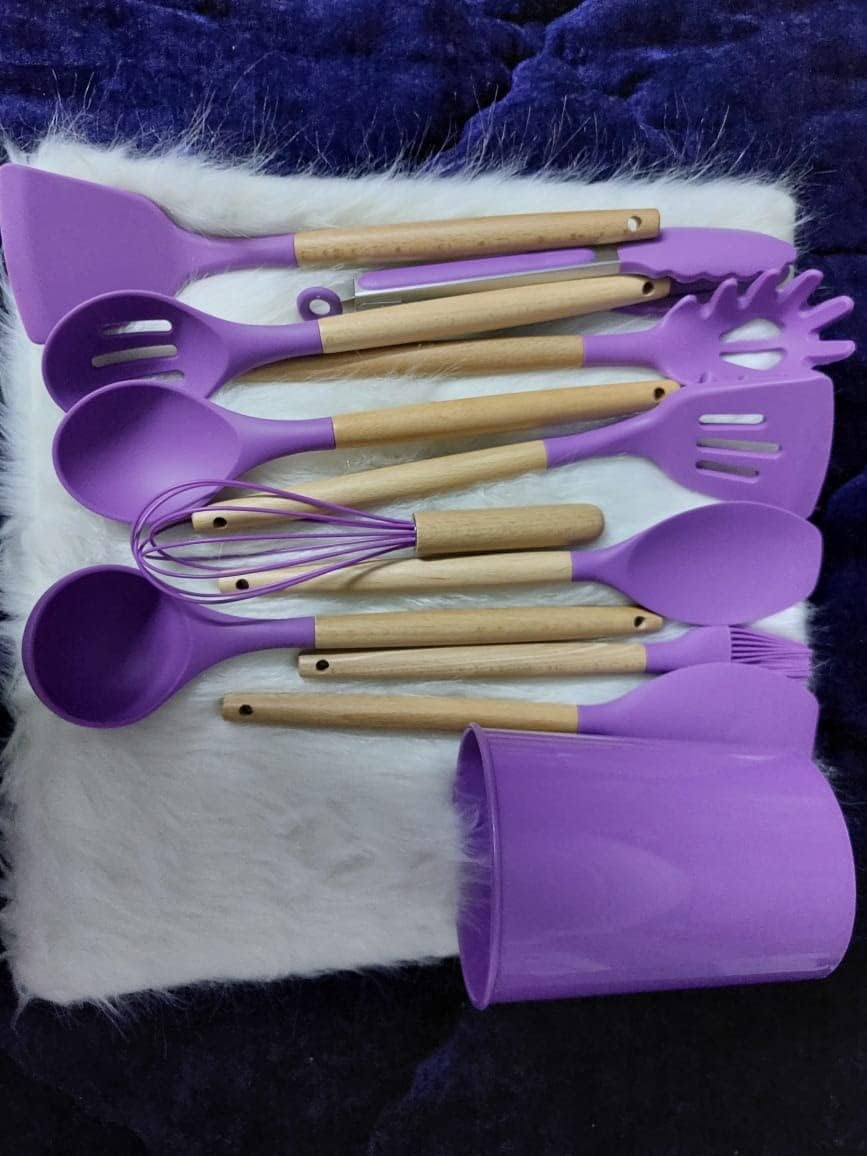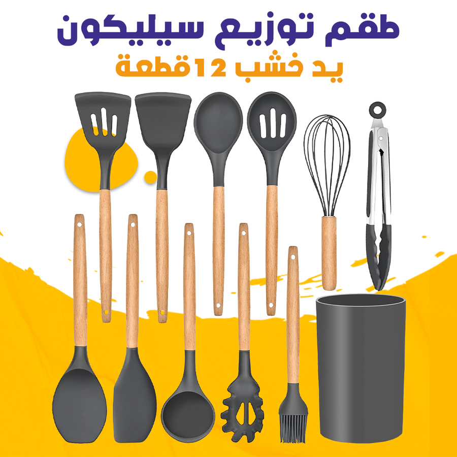 ستحصل على كل ما تحتاجه لتحضير وتقديم وجبات لذيذة بأناقة مع طقم توزيع سيليكون يد خشب 12قطعة